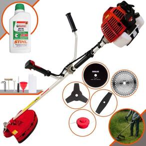 Roçadeira Profissional Lateral Kawashima KW52-L À Gasolina 2T 52c 2,5HP Com Lâmina 3 Pontas + Faca 2 Pontas 330mm + Faca 40 Dentes 255mm + Faca 80 Dentes 255mm + Óleo CASTROL STIHL 500ml