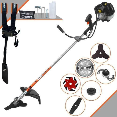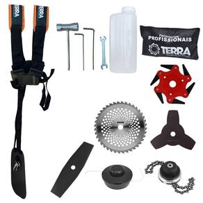 Roçadeira Profissional Lateral Terra GRH-430 Black À Gasolina 2 Tempos 43cc 1,7HP + Faca 2 Pontas 330mm 2,7mm + Faca 40 Dentes 255mm 2mm + Trimmer + Faca 6 Pontas 250mm