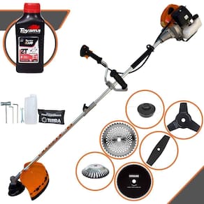 Roçadeira Profissional Lateral Terra GRHB-430 Bipartida À Gasolina 2 Tempos 43cc 1,7HP + Faca 3 Pontas + Faca 40 Pontas + Faca 80 Pontas + Escova Rotativa 38 Cerdas + Óleo TOYAMA LUB FG50 500ml 2T