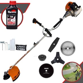 Roçadeira Profissional Lateral Terra GRHB-430 Bipartida À Gasolina 2 Tempos 43cc 1,7HP + Faca 3 Pontas + Faca 40 Pontas + Faca 80 Pontas + Óleo TOYAMA LUB FG50 500ml 2T