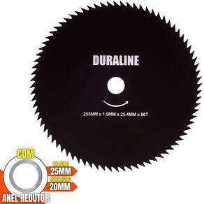 O DISCO DE CORTE 80 Dentes acompanha um anel de redução que pode ser utiizada para roçadeiras de furo 20mm ou 25mm, sendo feita em aço cromo vanádio que garante mais , desempenho e durabilidade. É uma lâmina balanceada, fazendo com que haja menor vibração, corte contínuo e suave, com mais conforto ao operador e mais longevidade para a roçadeira. Possui maior rendimento no trabalho e não precisa ser afiada antes do . É um disco multi pois pode ser aplicado para diferentes trabalhos, tendo em vista que pode serrar madeiras até 10cm.