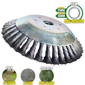 A Escova rotativa da Duraline acompanha um anel de redução, ou seja, pode ser utilizada para roçadeiras de furo 20mm ou 25mm, tendo as cerdas feitas em aço garante mais segurança, desempenho e durabilidade. A Escova Rotativa Duraline é balanceada, fazendo com que haja menor vibração, corte contínuo e suave, com mais conforto ao operador e mais longevidade para a roçadeira. A escova é do modelo côncavo, assim facilitando o seu uso durante o manuseio. A Escova pode ser aplicada para diferentes trabalhos, dentre elas: Limpeza de Pavers, Limpeza de Calçadas, Limpeza de concreto, Limpeza de Pavimentos, Remoção de musgos e Remoção de ervas daninhas