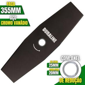 A LÂMINA (FACÃO) 2 Pontas acompanha um anel de redução que pode ser utiizada para roçadeiras de furo 20mm ou 25mm, sendo feita em aço cromo vanádio que garante mais segurança, desempenho e durabilidade. É uma lâmina balanceada, fazendo com que haja menor vibração, corte contínuo e suave, com mais conforto ao operador e mais longevidade para a roçadeira. Possui maior rendimento no trabalho e não precisa ser afiada antes do uso. É uma lâmina Multiuso de 2 pontas que pode ser aplicada para diferentes trabalhos, possui material reforçado que é ideal para trabalhos pesados, podendo cortar os seguintes capins: Capim Grosso, Capim Elefante, Guanxuma, Annoni, Vassourinha, Capim Napier, Capim Sapê e entre outras variantes de capins.