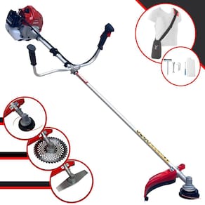 Com guidão ergonômico lateral, permite um alcance amplo e maior mobilidade, capaz de aumentar a produtividade diária. Possui motor 2 tempos á gasolina, de 43 Cilindradas; 1,7HP de potência que proporcionam maior performance e economia na operação. Seu conjunto de acessórios inclui kit de ferramentas, cinto de suporte almofadado, carretel de nylon e lâmina de corte 3 pontas.