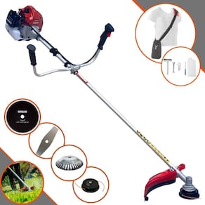 Com guidão ergonômico lateral, permite um alcance amplo e maior mobilidade, capaz de aumentar a produtividade diária. Possui motor 2 tempos á gasolina, de 43 Cilindradas; 1,7HP de potência que proporcionam maior performance e economia na operação. Seu conjunto de acessórios inclui kit de ferramentas, cinto de suporte almofadado, carretel de nylon e lâmina de corte 3 pontas.
