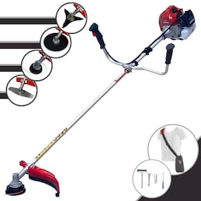 Com guidão ergonômico lateral, permite um alcance amplo e maior mobilidade, capaz de aumentar a produtividade diária. Possui motor 2 tempos á gasolina, de 43 Cilindradas; 1,7HP de potência que proporcionam maior performance e economia na operação. Seu conjunto de acessórios inclui kit de ferramentas, cinto de suporte almofadado, carretel de nylon e lâmina de corte 3 pontas.
