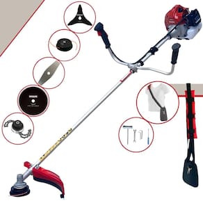 Com guidão ergonômico lateral, permite um alcance amplo e maior mobilidade, capaz de aumentar a produtividade diária. Possui motor 2 tempos á gasolina, de 43 Cilindradas; 1,7HP de potência que proporcionam maior performance e economia na operação. Seu conjunto de acessórios inclui kit de ferramentas, cinto de suporte almofadado, carretel de nylon e lâmina de corte 3 pontas.