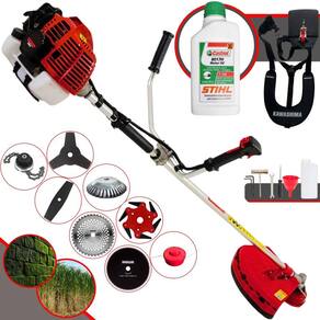 Roçadeira Lateral Kawashima KW52-L À Gasolina 2T 52c 2,5HP Com Lâmina 3 Pontas + Faca 2 Pontas 330mm + Faca 40 Dentes 255mm + Faca 80 Dentes 255mm + Faca 6 Pontas 250mm + Escova Rotativa 38 Cerdas 200mm + Trimmer + Óleo Castrol Stihl 500ml 2 Tempos