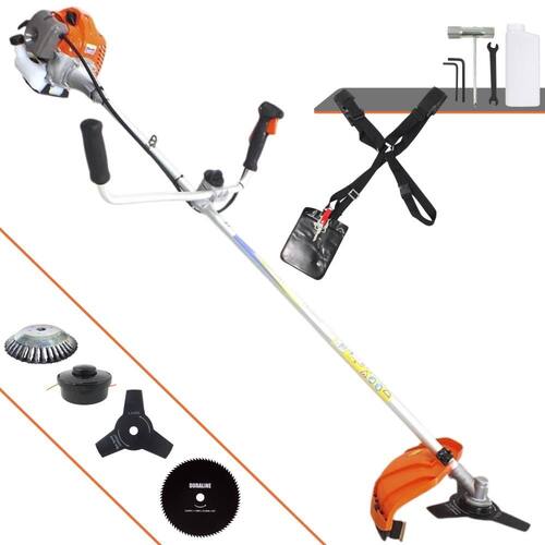 Roçadeira Vulcan Lateral VR430P 2T 43cc 1,7HP À Gasolina Com Faca 3 Pontas + Faca 80 Dentes 255mm 1,5mm+ Escova Rotativa 38 Cerdas 200mm