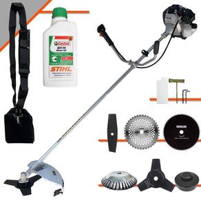 ATENÇÃO: A ROÇADEIRA É DA MARCA TOYAMA E ACOMPANHA UM ÓLEO 2T DA MARCA CASTROL STIHL