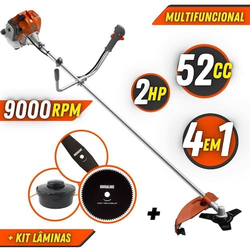 É uma roçadeira adpatável que pode se tornar multifuncional, podendo ser adaptado diversos modelos de acessórios, pois possui tubo de encaixe universal 28mm, e encaixe 25,4mm (1) para Lâminas e Discos, ampliando ainda a sua diversidade de cortes. Realizando o trabalho de forma ágil e confortável, com cinto duplo almofadado que acompanha o equipamento, proporcionando maior conforto, ergonomia e ao operador. Com guidão ergonômico lateral, permite um alcance amplo e maior mobilidade, capaz de aumentar a produtividade diária. Possui motor 2 tempos á gasolina, de 51,6 Cilindradas (52cc) de rotação 2,0 de potência que proporcionam maior performance e economia na operação.
