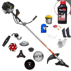 Roçadeira Lateral Terra GRH-430 Black À Gasolina 2 Tempos 43cc 1,7HP + Faca 2 Pontas 330mm 2,7mm + Faca 40 Dentes 255mm 2mm + Faca 80 Dentes 255mm 1,5mm + Faca 6 Pontas 250mm + Escova Rotativa 200mm 38 Cerdas + Trimmer + ÓLEO TOYAMA LUB FG50 500ml 2T + Kit EPI Completo