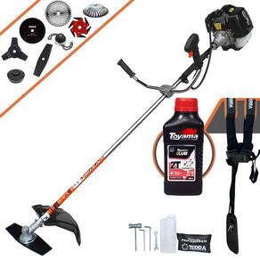 Roçadeira Lateral Terra GRH-520 Black À Gasolina 2 Tempos 52cc 2,5HP + Faca 3 Pontas 255mm 2,9mm + Faca 40 Pontas 255mm 2mm + Faca 80 Pontas 255mm 1,5mm + Faca 6 Pontas 250mm + Escova Rotativa 200mm 38 Cerdas + Trimmer + ÓLEO TOYAMA LUB FG50 500ml 2T