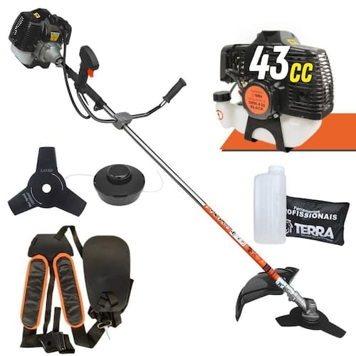 Marca: Terra | Com sistema antivibração: Não | Modelo: GRH430 | Motivo de GTIN vazio: O produto é um kit ou pack | Capacidade do tanque de óleo: N/A | Tipo de guiador: Aberto | Fonte do produto: N/A | Com regulação de guiador: Sim | Sistema de partida: Manual | Comprimento total: 180cm | Com guarda de segurança: Sim | MPN: 84678900 | Capacidade do tanque de combustível: 1,0L | Diâmetro de corte do disco de corte: 255mm | Largura total: 40cm | Tempos do motor: 2 | Eixo de transmissão: Reto | Peso: 11kg | Tipos de máquinas: Roçadeira | Potência do motor: 1,7 | Cilindrada: 43cc | Tipo de eixo da máquina: Reto | Diâmetro de corte da tanza: 255mm | Sistemas de corte: Faca e Carretel de Nylon | SKU: GRH430 | Acessórios incluídos: Kit ferramentas, cinto de segurança, misturador de combustível | Condição do item: Novo | É kit: Não | Código universal de produto: 7898594705486
