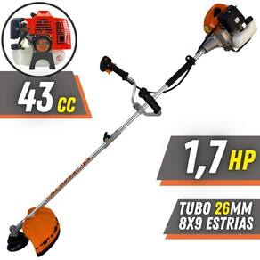 A Roçadeira Profissional GRHB-430 com haste Bipartida, é o mais novo modelo do mercado, trazendo inovação com seu novo eixo bipartido, podendo ser desmontada, facilitando o transporte e acomodação do produto, com motor 2 tempos à gasolina, 43 cilindradas e potência de 1,7 HP. Possui partida leve, com sistema manual, auto-retrátil, e com punhos ergonômicos de fácil aceleração e equipada com carburador universal BIGDINT de maior potência e economia.