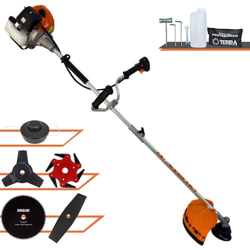 Roçadeira Lateral Terra GRHB-430 Bipartida À Gasolina 2 Tempos 43cc 1,7HP + Faca 3 Pontas + Faca 80 Pontas + Faca 6 Pontas 250mm