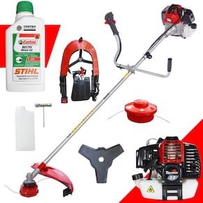 Com guidão ergonômico lateral, permite um alcance amplo e maior mobilidade, capaz de aumentar a produtividade diária. Possui motor 2 tempos á gasolina, de 52 Cilindradas, 10.000 de rotação 2HP de potência que proporcionam maior performance e economia na operação. Seu conjunto de acessórios inclui kit de ferramentas, cinto de suporte duplo almofadado, carretel de nylon e lâmina de corte 3 pontas.