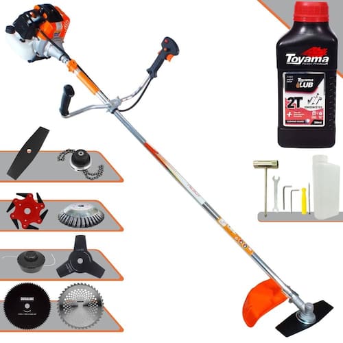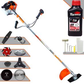 Roçadeira Vulcan VR430-S 43cc 1,7HP Com Carretel + Facas 2 Pontas, 3 Pontas, 6 Pontas, 40 Dentes, 80 Dentes, Trimmer e Escova de Aço + ÓLEO TOYAMA