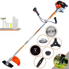 Roçadeira Vulcan VR430S À Gasolina 43cc Com Carretel Nylon, Lâmina Facão, Lâmina 3 Pontas, Lâmina 40 Dentes Vídea, Lâmina 80 Dentes e Escova de Aço