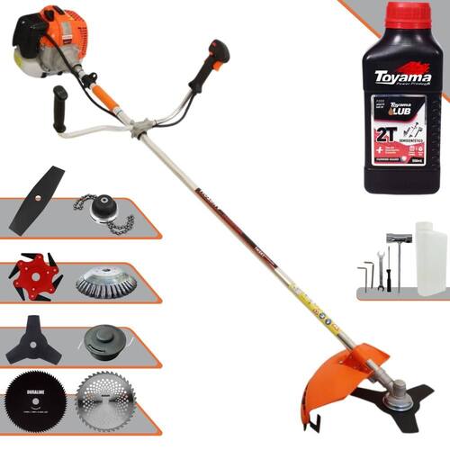 Roçadeira Lateral Vulcan VR620H À Gasolina 2 Tempos 62cc 3HP + Faca 2 Pontas 330mm + Faca 40 Dentes 255mm + Faca 80 Dentes 255mm + Faca 6 Pontas 250mm + Trimmer + Escova Rotativa 200mm 38 Cerdas + Óleo Toyama FG50 500ml