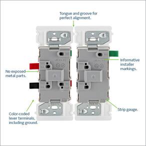 - Mais fácil – A alça grande facilita as instalações, bem como a capacidade de usar fio de cobre sólido e trançado de calibre 14 e 12