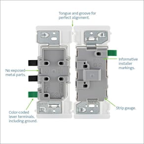 - Mais rápido – Terminais de alavanca patenteados para fiação rápida e eficiente. Fácil como empurrar. Clique. Feito