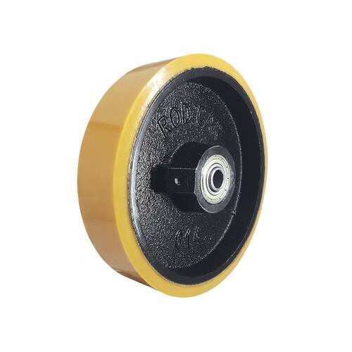 Roda com núcleo em ferro fundido e poliuretano moldado, equipada com mancal de rolamento esférico. Resistente a óleos, graxas, solventes, sais e produtos químicos, é usada para cargas intermediárias.