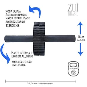 a zuí brasil equipamentos fitness, é uma marca que oferece produtos e de qualidade visando a satisfação e vida saudável de nossos consumidores. Esperamos que fiquem satisfeitos e aproveitem a qualidade e a praticidade deste produto. Características da roda abdominal: marca: zuí brasil produto: roda abdominal funcional possui 16cm de altura comprimento 33,5cm total pode ser utilizado por pessoas de até 130 kg rodas revestidas por borracha antiderrapante eixo em alumínio, mais leve e antiferrugem