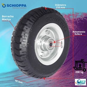 Para garantir uma boa qualidade do produto e maior dia útil é aconselhável usar uma margem de segurança de 25%A velocidade de trabalho indicada é até 4km/hAs rodas sólidas de poliuretano são amplamente utilizadas para carrinho de mão, carrinho de gramado, carrinho de mão, carrinho plataforma e outro,Sua Banda é em borracha montada sobre um núcleo de aço carbono galvanizado. Apresenta boa absorção de choques e eliminação de ruídoApresentam as mesmas características das rodas pneumática, oferecendo custo benefício. pois, a manutenção é muito reduzida.Aconselhável para aplicações em diversos ambientes de trabalho, que necessitam absorção de vibrações e eliminação de ruídos,Possui rolamento tipo rolete, o que da maior leveza à tração mecânica seu cubo reforçado com nylon nas extremidades.Alguns dos motivos para você escolher as rodas com Pneu maciço de 8,5" polegadas1.São mais econômicas e ambiental corretas do que as rodas de borracha.2. Bom em resiliência resistência3. Macias, Leve e durável excelente rodagem4. Resistente ao calor e ao frio, excelente elasticidade.5.Eliminação de ruído6. Resistente à água, óleo, sujeira, ácido e álcalis,.Indicada para superfícies de trabalho: concreto liso, asfalto, cerâmica, aço/metal, madeira,Condições do ambiente de trabalho: vapor, abrasão, óleo industrial, tração manual.