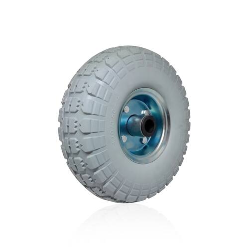 Características técnicas: - Marca Ajax - Modelo A04363-PU - Roda em PU na cor cinza - Circunferência do eixo 7/8" - Eixo com rolamento.