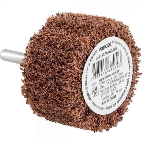 Indicada para acabamento de superfícies metálicas diversas, como aço, aço inoxidável, ferro, latão, cobre, alumínio. Use com retificadeira reta.