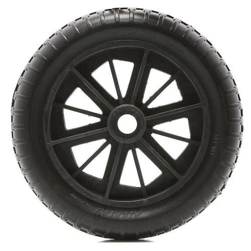 Roda com pneu pu maciço rd011 - alcalay - Material aro miolo : p.P plástico reciclado Material pneu: p.U poliuretano Medida: 240 mm diâmetro x 55 mm largura - pneu macio e leve - sem câmara de ar - não fura e não esvazia - não enferruja - ótima absorção de impactos -melhor custo -benefício Características gerais do produto: : 6 meses Marca: Não Informado