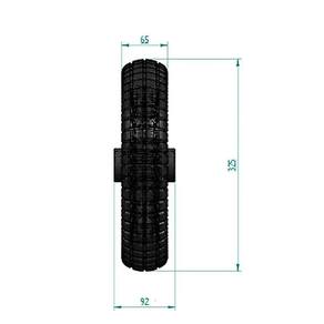Eixo 3/4 Diâmetro pneu: 325m Largura do pneu: 65mm Diâmetro da roda: 241mm Capacidade de carga: 150Kg Comprimento de Cubo: 82mm