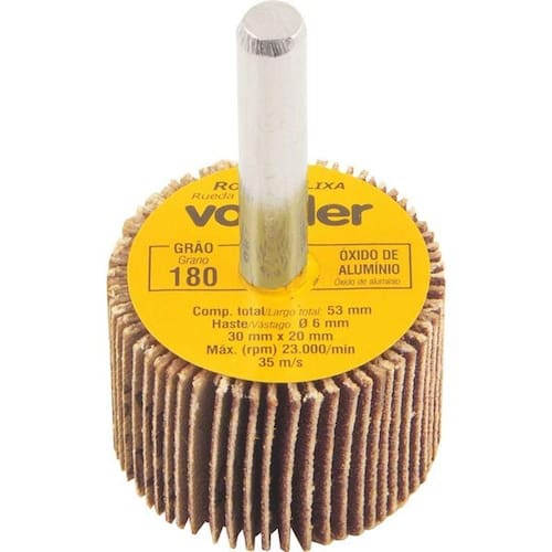 Indicada para lixamentos e acabamentos de superfícies planas, contornos e partes internas em aço, ferro, plástico, alumínio, entre outros. Adaptável em lixadeiras para tornos, furadeiras elétricas e chicotes em geral.