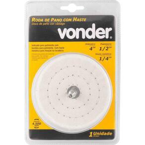 A Roda De Pano 4 C/Haste Vonder 3599044000 é perfeita para realizar polimentos com bastões em furadeiras. Com sua haste metálica, ela se fixa facilmente na furadeira, proporcionando maior praticidade durante o uso.