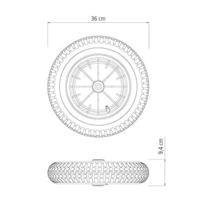 Informações Gerais - Pneu com câmara 3.25/8 pol. - Roda plástica. - Com bucha plástica. - Utilizado nos carrinhos de mão: 77703/422, 77703/432, 77717/421 e 77717/431.
