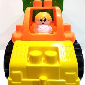 Brincar lá fora, com terra, areia e pedrinhas é muito mais divertido. O Truck vem com uma caçamba basculante que encaixa em diferentes posições do caminhão. E o Sr. Motorista também pode acompanhar o carregamento, pois ele vem com um formato que desencaixa da cabine. O caminhão vem com um pino de encaixe no para-choque para encaixar outros brinquedos da linha de Rodadinhos Blocks e complementar a brincadeira.