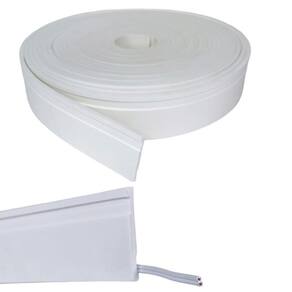 Material: Borracha EVA flexível de alta densidade Cor: Branco Largura: 7 cm Espessura: 8 mm Comprimento: 10 metros lineares por peça Canal traseiro discreto para passar fios finos