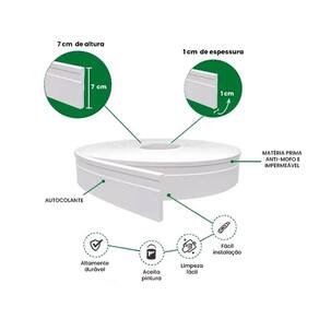 Rodapé de EVA Autocolante RP16 7cm Branco Também usado como rodateto, moldura de portas e janelas ou como sua imaginação preferir!