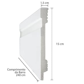 Adicione um toque final elegante aos seus ambientes com os produtos CASABLANCA! Acompanha Ficha Técnica: Não Altura: 15 cm Ambiente Principal: Quarto Complexidade da instalação: Baixa:pode ser montado por uma pessoa sozinha Comprimento: 240 cm Cor: Branco Cor do Produto: Branco Cor Predominante: Branco Espessura: 15 mm Imune a cupim: Sim Indicações de Uso: Indicado para instalações em quartos, salas, cozinhas. Itens Inclusos: 1 barra de rodapé Manual de Montagem e Instalação: https://product-hub-prd.madeiramadeira.com.br/957914/documents/f177408c-5df1-49e5-9632-7745f7609aff2417510415117278949938931.pdf Material Principal: Poliestireno Origem do Produto: Importado Peso: 1,764 kg/m Resistência à Água: Sim Resistência a umidade: Sim Resistência ao Fogo: Não Tipo de Instalação: Colado Uso Indicado: Interno