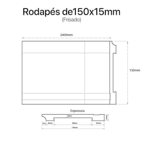 Rodapé de Poliestireno Frisado 15cmx15mmx2,40m Pix Revestimentos - caixa com 24 Unidade - Preto.