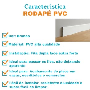 Visual moderno e clean Acabamento perfeito entre parede e piso Canaletas internas para esconder fios Resistente à umidade, mofo e cupins Fácil de instalar e limpar Produto leve e prático Não precisa pintar