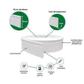Marca: Meu Rodapé Material: Eva Cor: Branco Referência: 800 2,5m ; 820 10m Comprimento: 2,5 Metros ; 10 Metros Altura: 10cm Espessura: 1cm