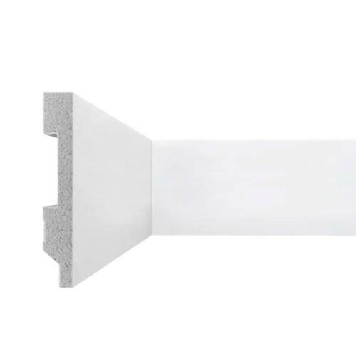 Rodapé em poliestireno floort® . Rodapé de acabamento para ambientes internos. Material imune a pragas, cupins e resistentes à água, não mofam, não apodrecem e não propagam bactérias. Instalação sem restrição com relação ao tipo de piso a ser instalado. Rodapé em régua que pode ser instalado em espaços residenciais e comerciais incluindo ambientes úmidos.