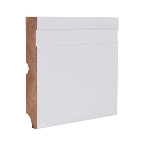 Rodapé de MDF recoberto com revestimento premium flexlan branco.