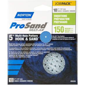 12.7 cm Norton 03220 ProSand Multi-Hole Hook & Sand Discos de Areia, Grão 150, Pacote com 10