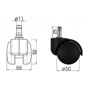 * ATENÇÃO: Este pino de encaixe é padrão em aproximadamente 95% dos modelos de cadeira, todavia recomendamos remover um de seus rodízios e verificar se é este mesmo padrão de sua cadeira, de pino com diâmetro de 11mm e um “anel” no topo, conforme fotos do produto.