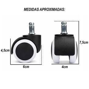 Fabricadas com materiais resistentes, essas rodinhas oferecem excelente durabilidade e suporte, suportando o uso contínuo com segurança. O encaixe padrão facilita a instalação, sendo compatível com a maioria das cadeiras giratórias do mercado. Além disso, o revestimento especial proporciona maior estabilidade e evita riscos em pisos como porcelanato, madeira e laminado.