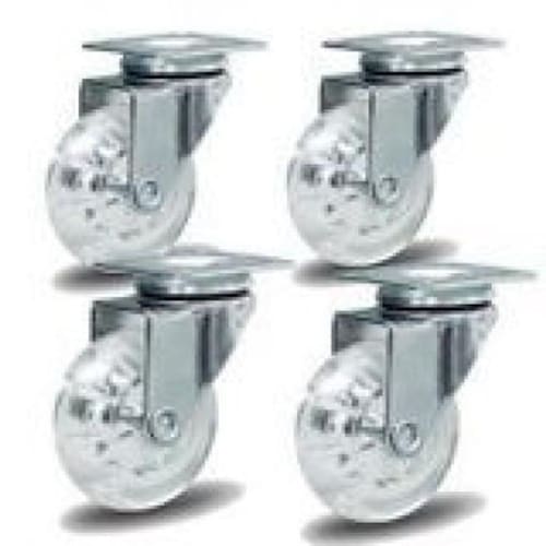 Garfo fabricado em chapa estampada e cabeçote com uma pista de , acabamento cromado. Eixo da roda rebitado, roda 50 mm colorgel, composto termoplástico com pvc transparente. Dureza: 90 shore a -10ºc a +50ºc injetada com revestimento em composto termoplástico com pvc transparente em diversas cores e núcleo em acrílico. Ideal para móveis, gira com muita facilidade, requerendo pouco esforço para movimentação. Não deforma sob carga estática, apresenta boa resistência química e a impactos moderados. Produzida com material reciclável 4 rodizios giratórios fixação placa quadrada 4 furos medidas 42 x 42 mm entre furos 32 x 32 mm altura rodízio 65 mm capacidade carga por rodízio 40 kgs eixo furo passante sem rolamento garantia 3 meses defeito fabricação Marca: Movifacil
