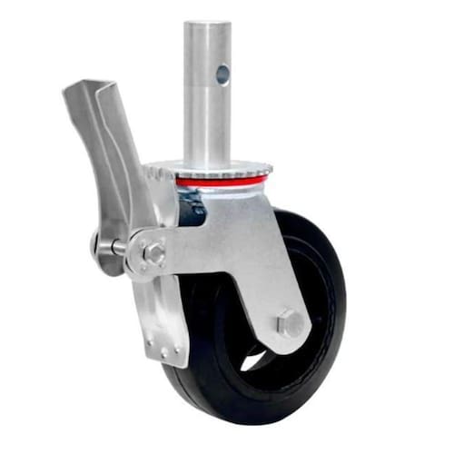 Rodízio de andaime giratório com trava 6 pol 200kgRoda com núcleo em ferro fundido, revestimento de borracha moldada de alta qualidade e rolamento rolete, que permite movimentações sem atritos e o máximo de desempenho mesmo em condições adversas.Garfo em aço galvanizado com freio de alta resistência.Possui bico de graxeira.Peso: cargas médias e pesadas.Piso: metálico, asfáltico, cerâmico, concreto liso, epóxi e madeira.Ambiente: andaimes que atendam a nr-18.Espiga: diâmetro: 32 mm comprimento: 140 mmDiâmetro da roda: 6Largura da roda: 50mmDiâm.Int. Do furo do eixo pol.: 3/4Altura do rodízio: 330mmCapacidade de carga: 200 kg